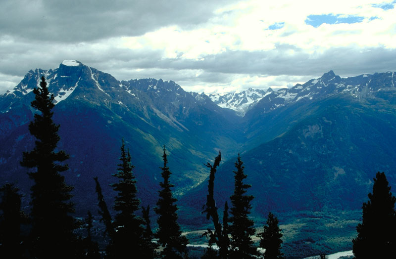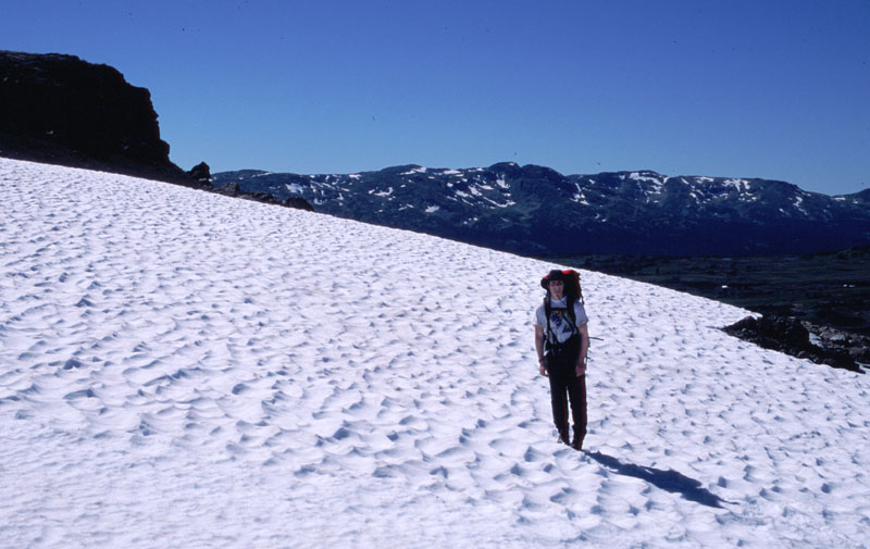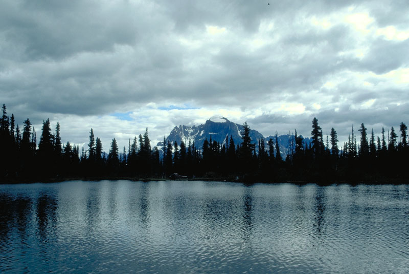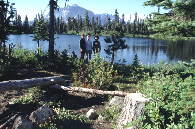 August 15The last camp, Hump Lake, day 6. It is a pretty neat campsite, right next to Hump Lake (very clear water) and with a fantastic view of Stupendous Mountain with its glacier cap. Today's hike was not so long as other days, but it had its own share of challenges. There was a lot of up and down climbing on slippery, rocky slopes. The final 5km before the camp was a path scraped into the side of a mountain. At points much of the Bella Coola Valley was visible before us, an amazing site. You could see from the path more than 3000 feet below to the valley floor, with its road and river. The path was rocky and taxing, and by this point all of us are injured in one way or another - me and Robert with our ankles, Ian with his knee. Oh, and we saw a small eagle or falcon today just a few dozen feet away from the trail. It was catching thermals from the valley and looked like it was having fun. Everyone's spirits were high today we anticipate showers, real food, and a good be tomorrow.