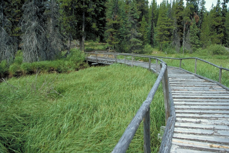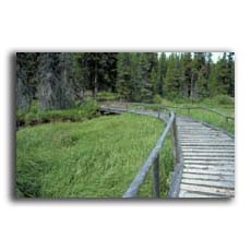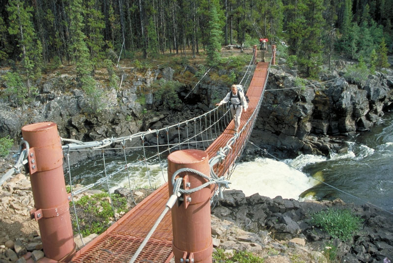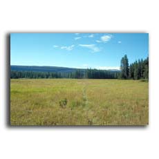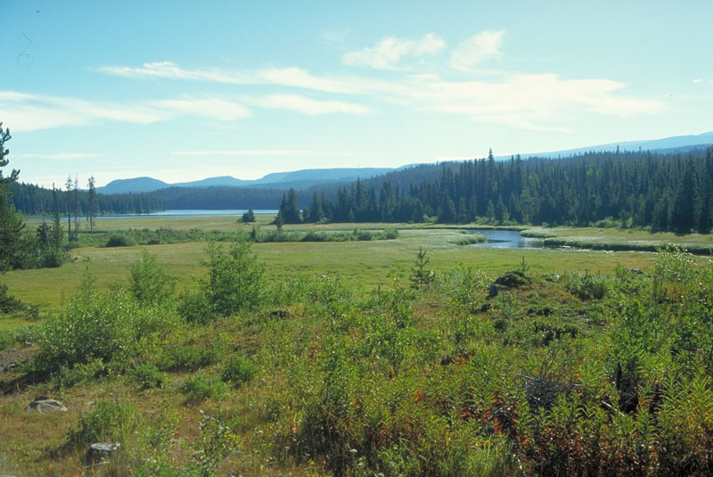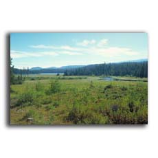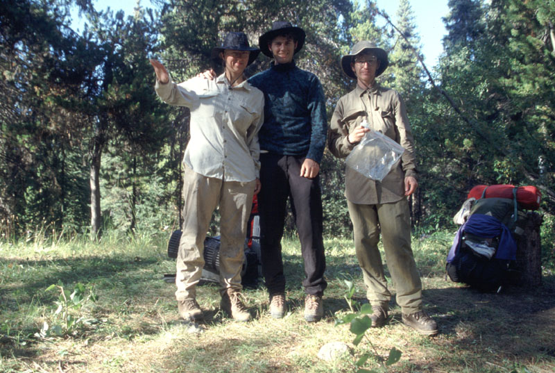 August 12Today was another long day. We got a late start because we had problems with the water filter. One day at Malaput and the filter cartridge seems shot - It take now like 15 minutes to get a liter of water. We have now 44 iodine pellets, enough for 22L , and of course the option of boiling water (1Lx10Min each) that is limited by our fuel supply. What a quandary! Next time, we should assure that more than one person carries iodine tablets and/or replacement filter cartridges. The first 6km was not too bad. We skirted a meadow that the guidebook called "small" but which Robert said could probably be seen from space. Squinnes Lake is quite beautiful. The campsite where we took a break was lovely with a brisk breeze. The shore of the lake was rocky, making it much easier to get water. I was sad to leave. The part of the hike that we all dreaded today was crossing Serpent Swamp. This swamp was named so not because of its denizens but because of the shape of the river that feeds it. But miracle of miracles, some blessed, kind people had built a beautiful bridge across it! A good thing too, because the swamp would have been impassible. These same wonderful people had built a bridge across the Serpent River. I felt like sending a substantial donation to the Mackenzie Trail association. After that point we trudged on, our 4km/hr pace from yesterday to a 2km/hr pace. The Tanya Lakes we reached after miles and miles of meadows, hot and stick, and bogs with many bugs. Imagine our glee now that the monotony of mosquitoes has been broken by gnats, flies, wasps and bees. We have learned many disturbing things about DEET-based insect repellent.
