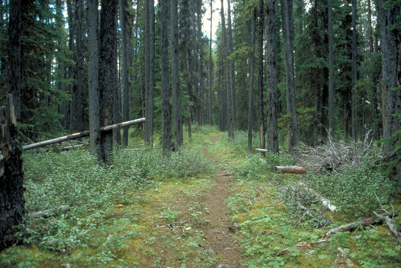 The hike along the Tanya lakes was very long, mostly because there are two long lakes and because we were bone tired. There were some high points. At upper Tanya Lake is a break in the trees. There was a great wind from the lake, plus a view of the Rainbow and Coast Mountains. A few kilometers later was a huge basalt outcropping above us called Eagle Cliff. But most of the time we trudged through dense, airless forest. We pushed on a kilometer beyond our planned Lower Tanya campsite in order to reach the banks of the Takia river. It is a pleasant campsite and for the first time in a while, the water is clear. The mosquitoes are horrendous, but by now that is an old story. We ate dinner and fled for our tent in record time. By the way, it is very clear we are now in bear country. There were berry-laden bear droppings, bear tracks, and what might be bear-clawed trees. At the campsite was a very serious bear-proof frame for food. Ian took a picture. We are all pretty tired now, so I will sign off.