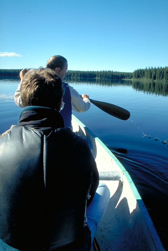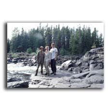 August 9This is our second day at the cabin. Ian, Robert and I just came back from canoing down to the Indian camp. I wanted to sneak up on the beavers that the guys saw yesterday on their walk, but no luck. We did, however, see one of the lakes bald eagles. The lake today is glassy and calm, almost too calm for the floatplanes to take off. The weather is clear, which bodes well for our upcoming hike. Robert says we shouldn't be using up our good weather at the cabin, but that is just typical silliness. Yesterday we had a lot of chores to do: fetching water, chopping wood, washing dishes, installing the new propane stove, and all the other things that always have to be done at the cabin. We also sealed the seams on the rainfly of Robert's tent. What a pain! I got more of the sealant on my hands and in my hair than on the rainfly. Little bugs and bits of dirt got caught in the drying silicon, making it kind of portable La Brea tarpit. The trip to the cabin was long - 2 full days of driving, and two plane trips. The second was on one of Duncan Stewart's Beaver planes, which typically seats 6. I think the planes are a lot of fun, but mom gets terribly nervous. We have plenty of work left to do today, so I will stop my entry here.
