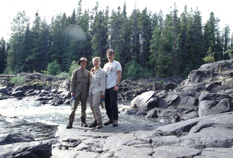 August 10It is 4 p.m. and the 3 of us are gratefully lying in our tent. It is warm but blissfully free of mosquitoes and flies. Today's hike was long, but made shorter by my parents dropping us off near Basalt Lake and our premature selection of a campsite at Malaput Lake. The terrain today alternated between swamp, pine forest, and arid, rocky, fir forest. The day was unexpectedly hot and still, a haven for mosquitoes. Our passage through the area has undoubtedly assured the survival of future generations of the pests. Robert had some dramatic reactions to their bites. I hope his immune system calms down with time, otherwise he will be a most uncomfortable camper. We crossed a number of bogs today. When I saw the first, I said, "Oh, a meadow", which really couldn't be further from the truth. Over a 100m across, the swamp sucked at our boots. At the second bog, I tried to lead. Disaster! I lost my footing and plunged my left leg into about a foot of mud and stagnant water. After that, I followed Ian or Robert, who seem to be more surefooted, or who at least know hot to read a bog. I was disappointed that we saw no critters today besides the mosquitoes. No grouse, moose, loons, bears, porcupines, even squirrels. I suppose all warm-blooded creatures have been driven away by the insects. I have to say that today is bloody hard hike. The blessing of it is that you work so hard to keep moving that you don't notices the time passing. Then when you lay down you are too bone tired to worry about anything. I guess that's why were here. If we wanted Mai Tais, topical sun and well oiled cabin boys we would have gone to Acapulco. Or at least I would have.