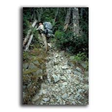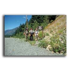August 16We finally made it! We all woke up at about 6am, unable to sleep, but knowing it was too early to get up. We read Dune to each other until 7:30. No oatmeal this morning - I swear I will never eat oatmeal again. Instead I had a very unappetizing power bar. We had 8km to complete today, a small distance but a very long descent, about 3500 ft. We left camp at 9am, and almost immediately started climbing down. The trail went on and on, steep and treacherous. Apparently the people who created this trail did not understand the concept of "switchback". Their trail consisted of long steep portions interspersed with short parallel portions instead of vice versa. On top of that there were loose rocks all over the ground that regularly slipped out from under our feet. I came close to falling several times, as did Ian, and Robert was forced to use his hands to catch himself more than once. Luckily, the trail had less exposure than yesterday's trek, which made me feel more comfortable. Eventually we reached the end of the trail, which quite unceremoniously dumped us on highway 20. We walked about 100m down the road to the Mackenzie Picnic area next to Burnt Bridge Creek. It was nice, cool, and had few bugs. We waited from 12:30 to 3:00 for the taxi to arrive. In the interim Robert prepared himself one of the two remaining hydrated dinners: Louisiana Red Beans and Rice. He learned that rehydrating food is not as easy as the master chef makes it look. You've got to watch out for the unmixed dry chunks. We also tried to burn off the remaining stove fuel. An hour and a half on full power and the stove was still going strong. Good to know. The taxi arrived on time. We all piled in feeling somewhat sheepish about our disheveled appearances and unwashed smells. The driver was a pleasant fellow, who would not stop talking. I had the bad luck of sitting next to him, and thus was forced to make small talk for the entire half hour. I was in no mood for this - all I wanted was a hot meal and a shower. But what could we do? And so we took the scenic trip through the Bella Coola Valley. We saw all seven churches. We saw an old farmhouse that Norwegian immigrants had inexplicably moved from one side of the road to the other ("It's a museum now" said the driver). We learned that July was very rainy, that tourism was on the upswing, and that three to four murders occur in Bella Coola in a lifetime. We stopped on one of the numerous bridges over branches of the Bella Coola river to watch the spawning salmon. They were enormous and so numerous that it must be a major problem for fisherman not to trip on them. We saw the Snootti Salmon hatchery ("10 million salmon release every year"). We drove onto an Indian Reserve to admire the murals painted on the walls of a new school. We learned that Nuxälk but had a Norwegian name I had never heard and cannot now remember. We learned that about 3000 people live in the valley, about half of them native. Bella Coola Valley was a spectacular sight. It was kind of like an undiscovered Yosemite Valley, with sheer granite faces, waterfalls, and creeks. Once in Bella Coola, we were given the grand tour, then checked into our motel. It turned out to be run by this Russian women out of her kitchen but it was serviceable enough. We bought T-shirts and toiletries and cleaned ourselves up. Then, we went out for dinner. Everybody had bacon cheeseburgers with fries. Ian and I split a jug of beer. Even Robert had a glass. [This was one of Robert's first beer's for those of you who knew him back then] Oh, and Rob had a chocolate milkshake. Like the showers, it was heavenly. On the ferry from Vancouver to Victoria the next day the guys bough a bunch of backpacking and outdoor magazines. I guess they are trying to plan our next trip. I think they've gone bananas. |